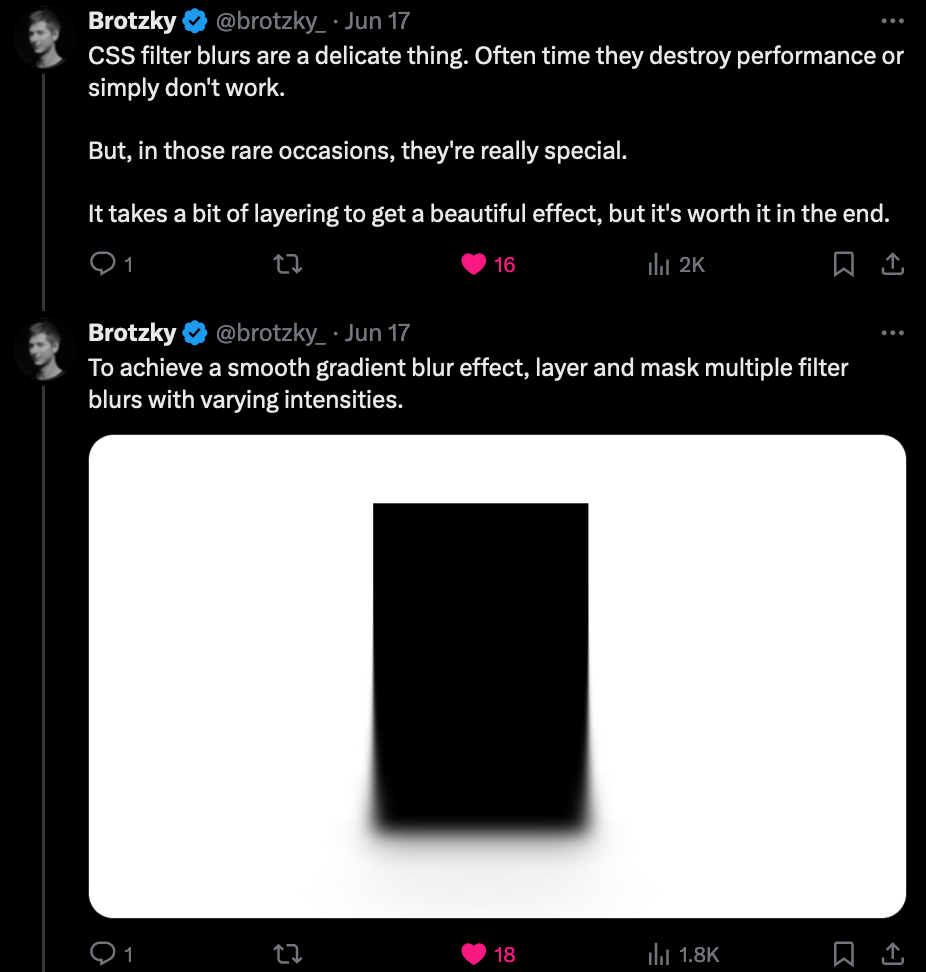 Last week I wrote about blurs in CSS, this week I discovered another useful nugget in that regard. Dennis Brotzky shows us how to create a nice seamless blur with CSS - this is actually something I have encountered some weeks ago without finding a proper solution to it. When you combine the backdrop filter blur with a transparent linear gradient it gives for a cool modern aesthetic, but the issue with the blur filter is that it creates a hard cutoff edges wherever the blur is bound to start/end.