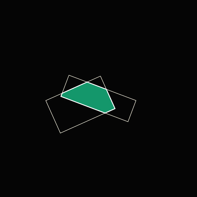 With this in place we can now tackle the task of finding the intersection polygon formed by the two rectangles. If you solely need to determine that two rectangles are intersecting or overlapping you can stop here. If you need to somehow also obtain the polygonal shape that the two rectangles form there's a couple more steps that we need to go through.