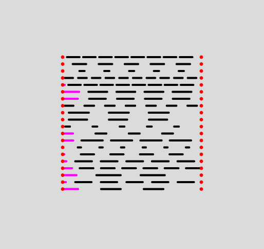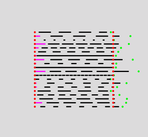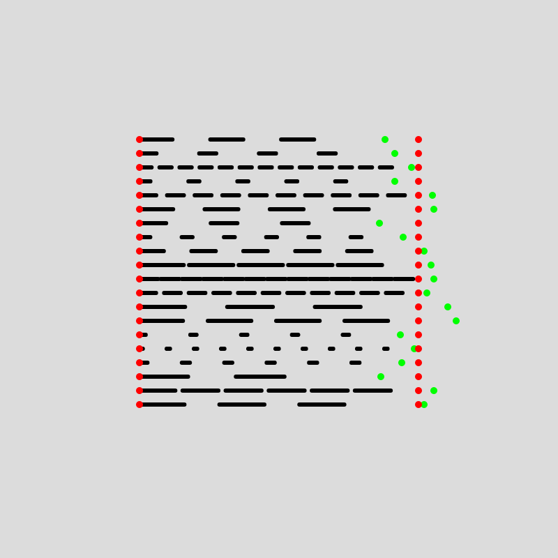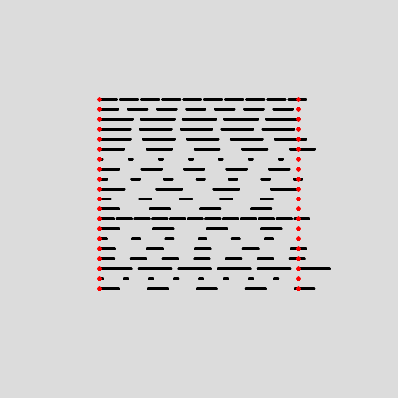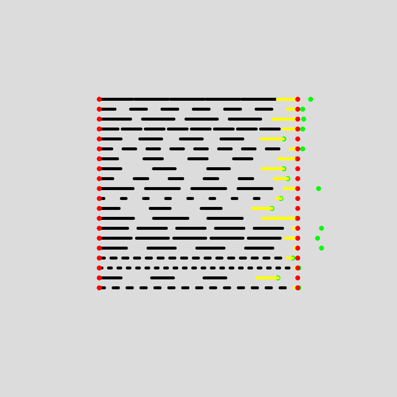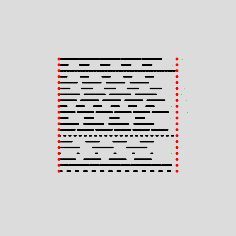 Watching this go on for a little while, you can see how unsatisfying it is to see the first dash of each line pop up out of seemingly nowhere, and equivalently we again have a problem of a protruding final dash.