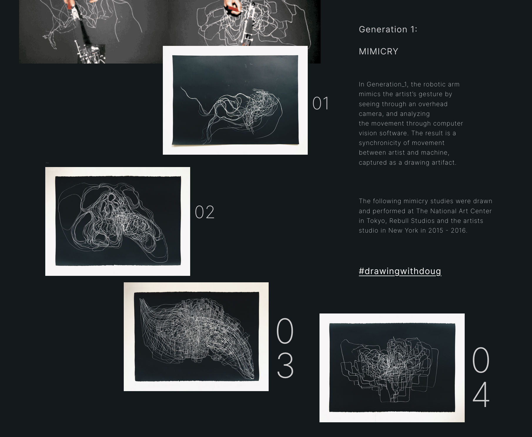 I was particularly impressed by Sougwen Chung's work after having a closer look on her website - her work involves programming a robot to mimic her drawing motions and recreating by means of a plotter: