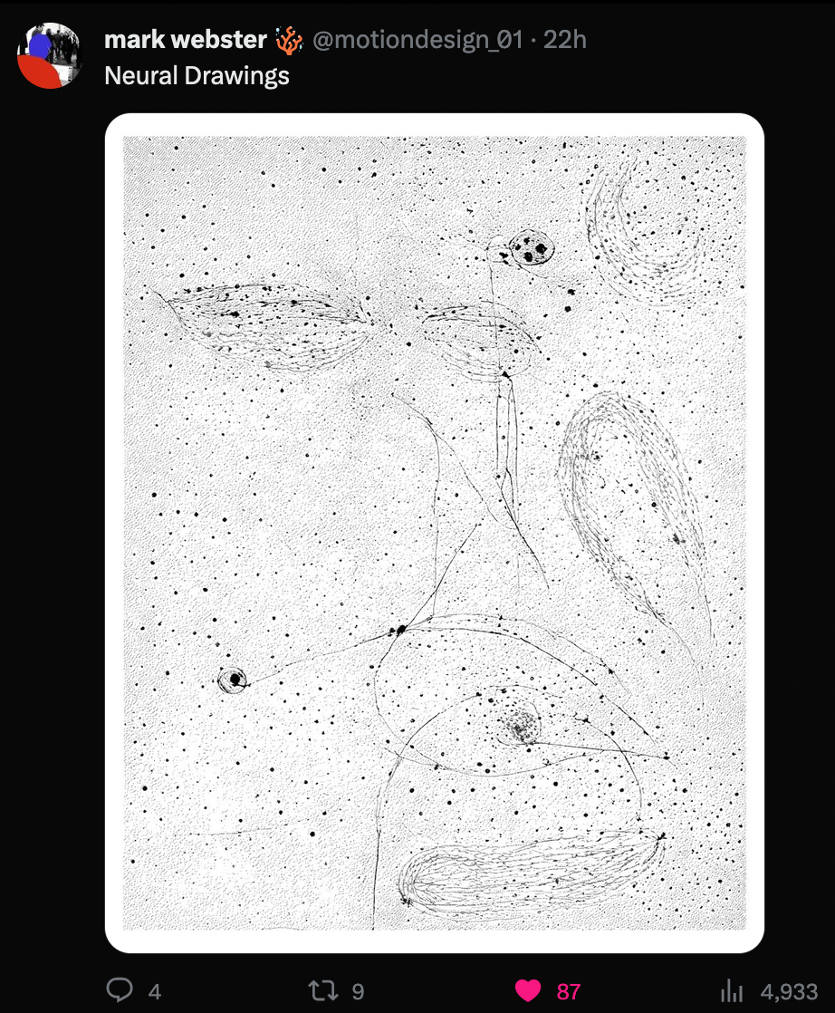 With a varied body of work ranging from organic neural drawings to more blocky, ascii aethetics - Mark Webster is a powerhouse of generative art: