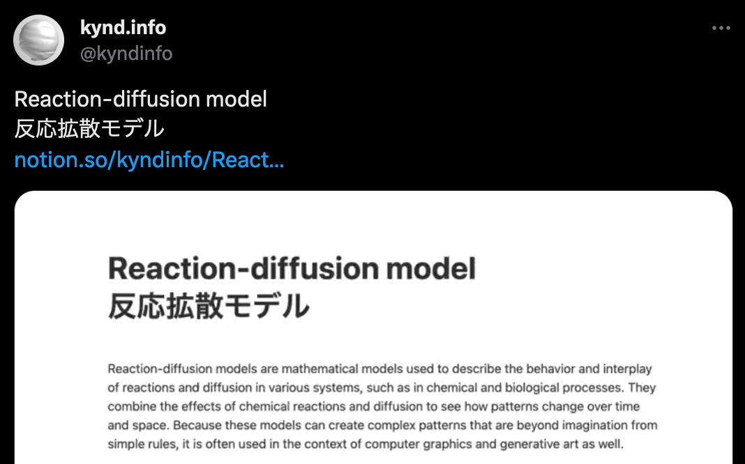 The article isn't super in depth but it enumerates some of the methods with which reaction-diffusion can be achieved. What I want to point out is that they have quite a few posts that are superb as primers for many generative art techniques - they can be found on their notion index page here.