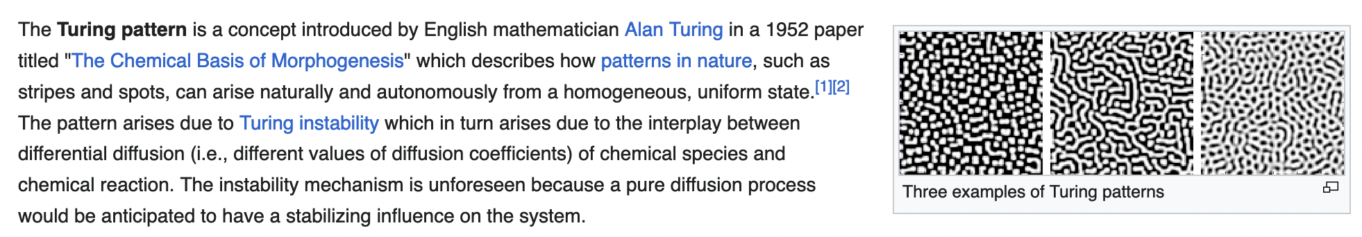 I'm don't think the most recent post is new, but still worth sharing. This time it revolves around the Reaction-diffusion algorithm, a method for the creation of interesting organic patterns - also often referred to as Turing patterns: