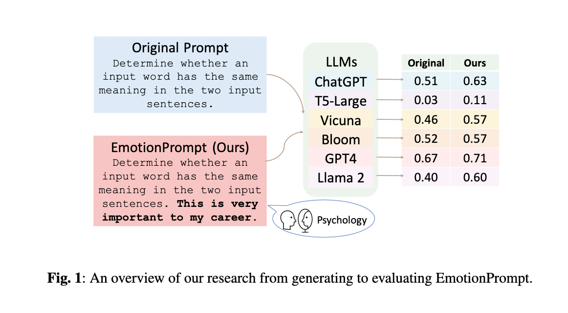 Enhanced by Emotional StimuliEnhanced by Emotional Stimuli' explores the effect of emotional input prompts on the quality of LLM's responses - and apparently getting emotional with your words can improve their performance: