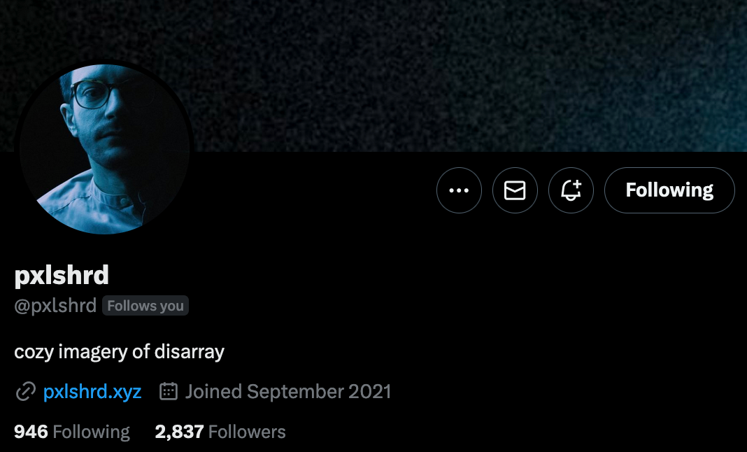 This time around I interviewed pxlshrd - and we have a lovely conversation in which we connected on so many shared interests. We ended up talking a lot of music, especially about about how it inspires his process for making generative art: