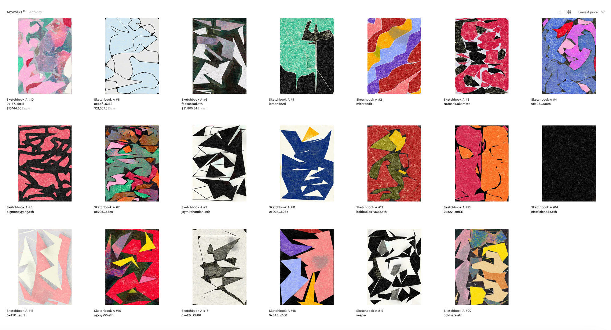 The way minting an iteration from Sketchbook A works is by means of a mint pass: being a holder makes you eligible for minting an iteration from the generator (that is if you can get your hands on one these mint passes). On verse you can then play around with the generator and produce as many outputs as you like, save the ones you particularly enjoy and then ultimately decide on the output that you'd like to eternalize as your token.