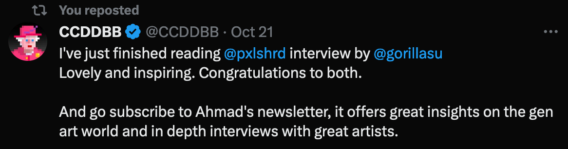 Hope this caught you up a little bit with the events in the world of generative art, tech and AI of the past week! And I hope you have a lovely rest of the day and a great start into the week - I definitely am!