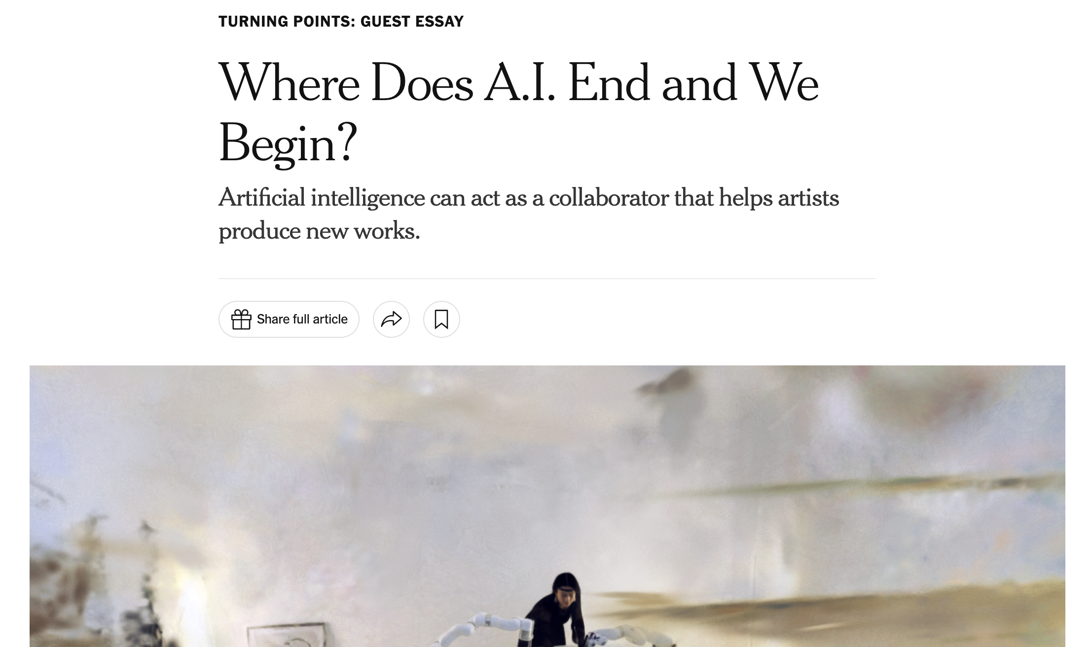 You might already know Sougwen Choung from previous Newsletter issues as the artist that draws in collaboration with her robots - she was invited to write a personal reflection in form of a guest article for the New York Times:
