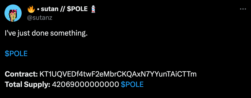 You'd think that's the end of the meme. What else could there be? Why of course, Tezpole now also has it's own Tezos token: