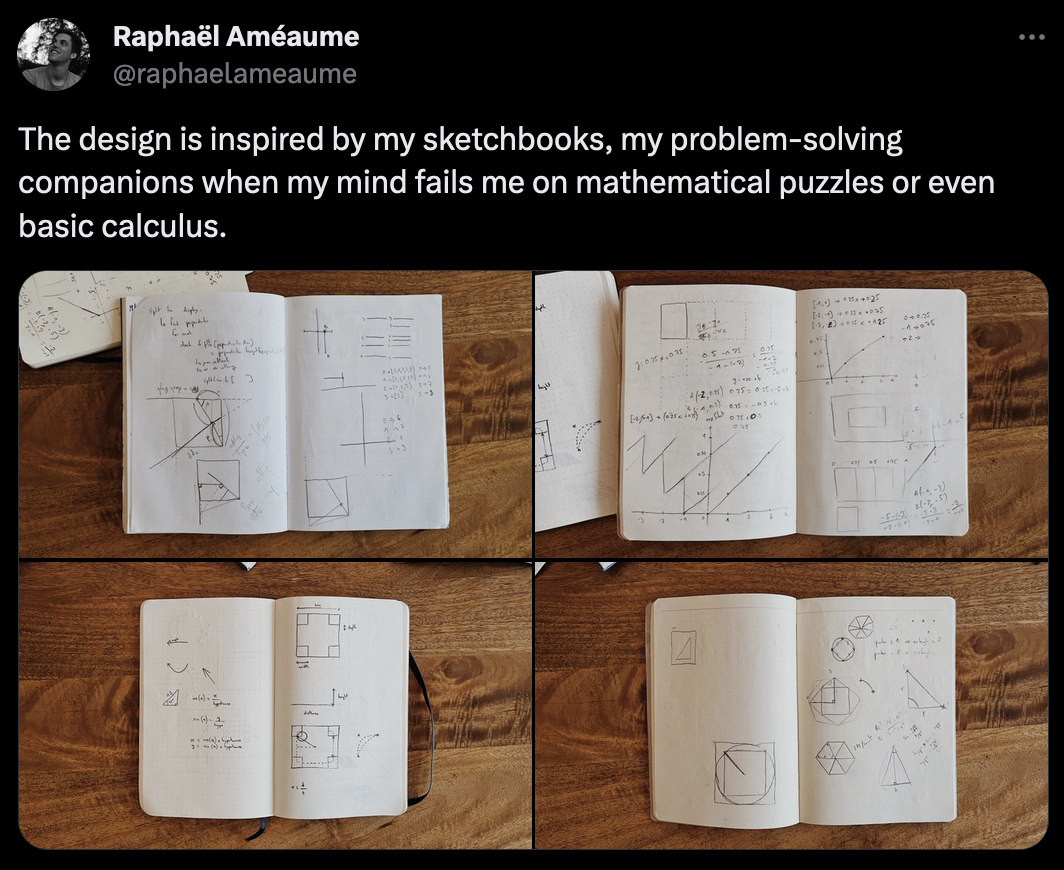 Raphaël Améaume recently put together his own page and it's a stellar example of this - combining creative interactivity with a sleek design inspired by his sketchbook notes:
