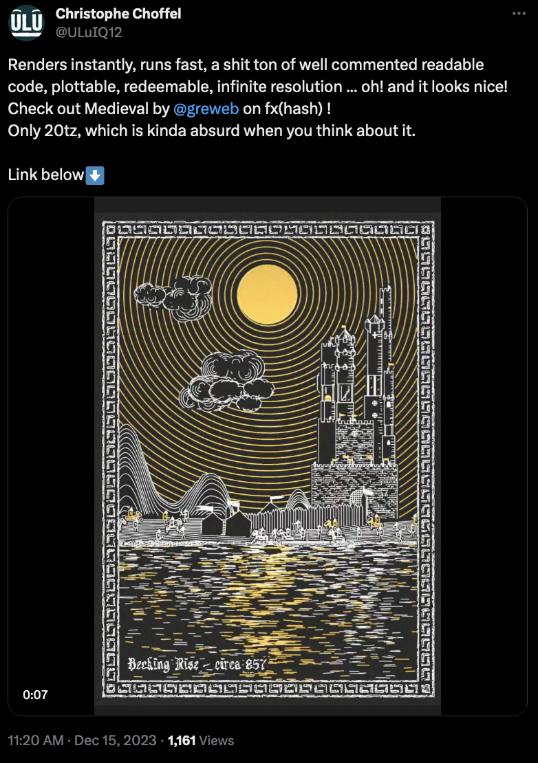 Greweb's another prolific plotter wizard that recently released a project he's been working on for quite a while - generative depictions of medieval sceneries that can you can plot by yourself or be redeemed for physical plots straight from greweb: