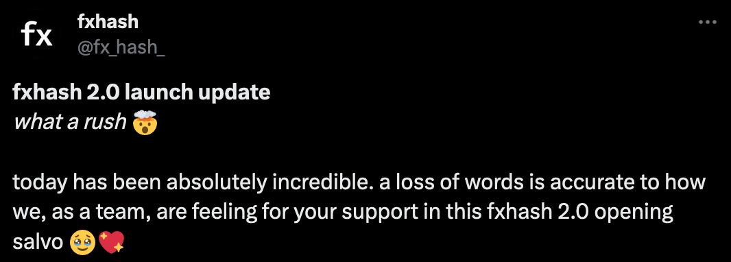 After the necessary postponement, fxhash launched just a couple of days ago on the 14th and is now fully live with its Ethereum integration! Although there have been a couple of hiccups, things have gone relatively smoothly for the now multi-chain platform:
