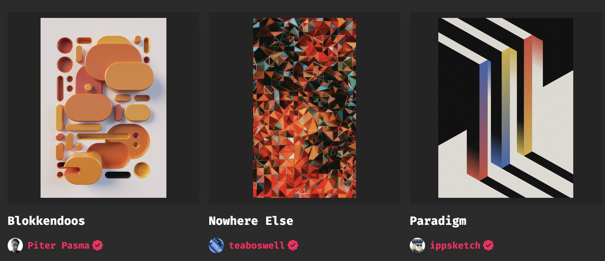 One smash hit from the first couple of days that I'd like to highlight for its virtuosity, is Piter Pasma's Tender curated drop, titled Blokkendoos. You might know him as the brilliant mind behind the Universal Ray Hatcher from a couple of months ago, and he's back with another impressive feat of generative art.
