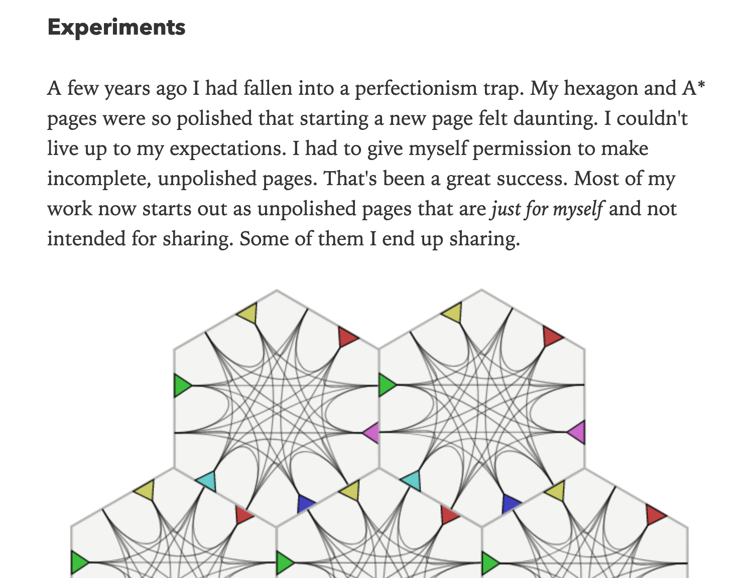 I used an axial coordinate system in my generative artwork Hex Appeal, which I would not have known about if it weren't for the Red Blob Games reference.