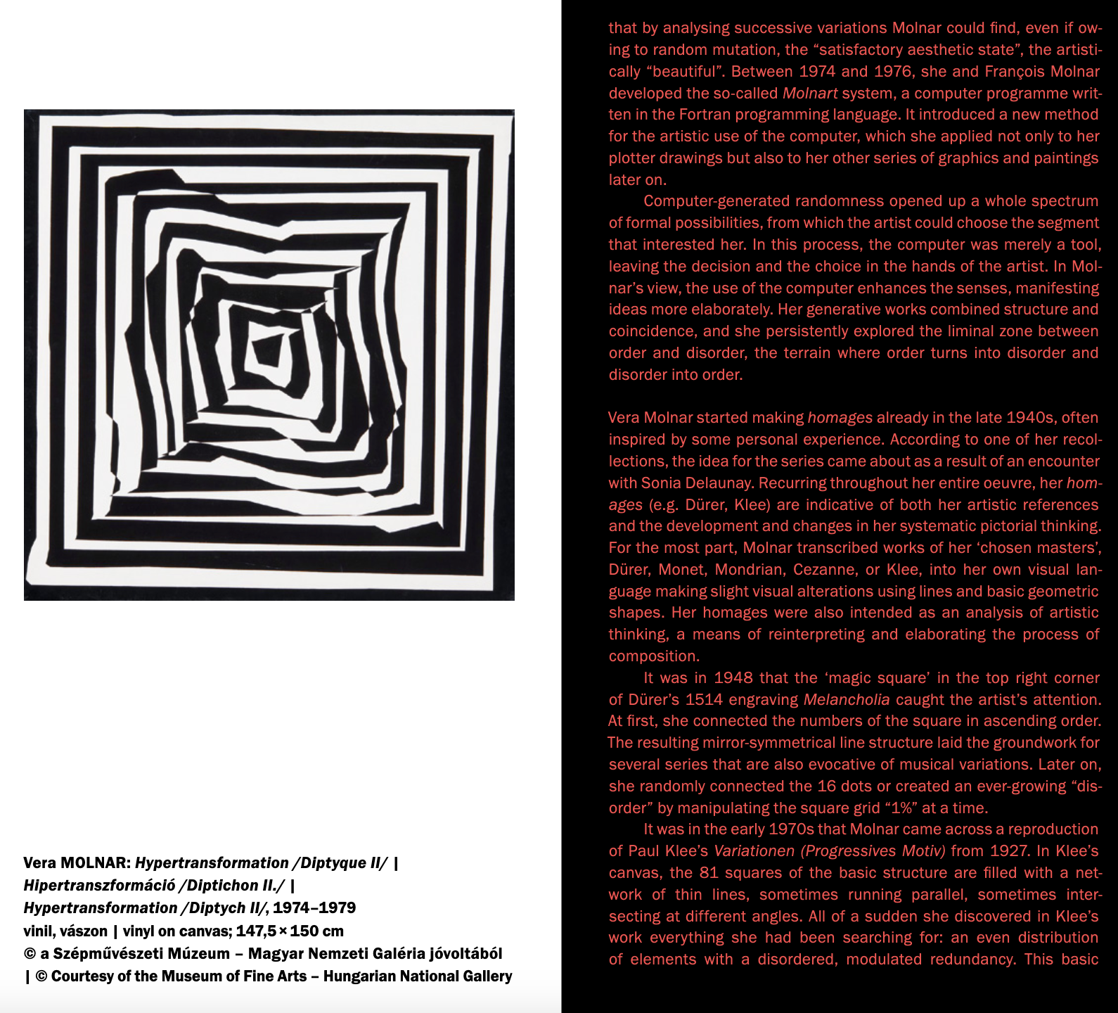 Many more words and resources about the exhibition and Vera Molnár were shared over on social networks - I merely tried to showcase the highlights here. If you somehow find yourself in Budapest, the Ludwig Museum is definitely worth a visit, with several other simultaneously ongoing exhibitions.