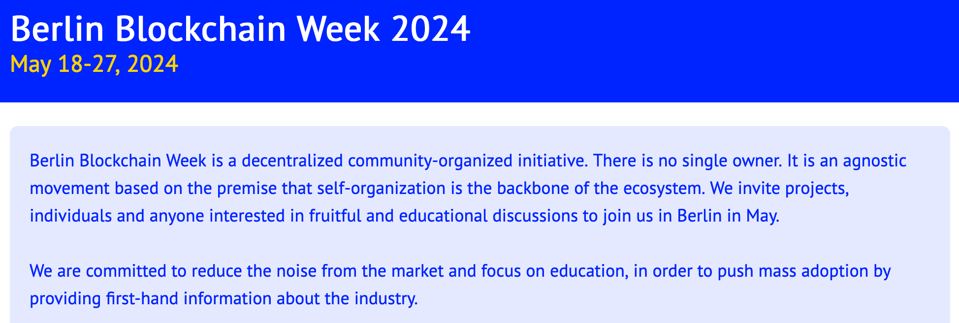 One other thing here - if you're in Berlin or nearby in the next you might want to check Berlin Blockchain Week 2024 as it's unfolding over there.