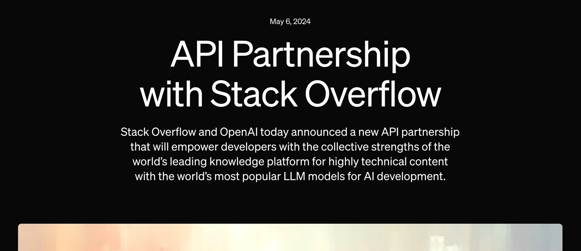 Arguably the biggest news in tech from the past week was the announcement of a partnership between OpenAI and StackOverflow.