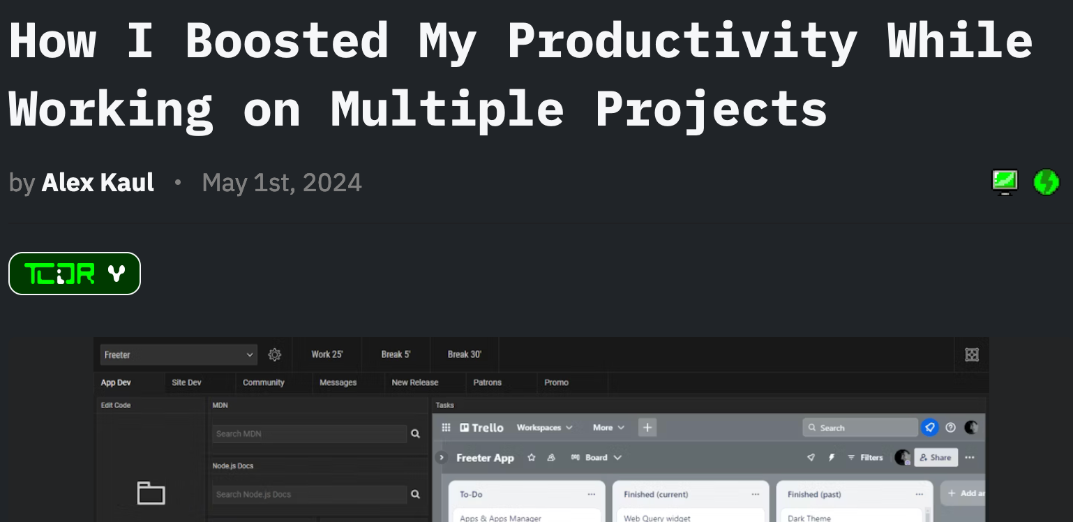 To combat this conundrum freelance web dev Alex Kaul created his personal productivity app titled Freeter, that allows him to better keep track of the different tasks that he needs to tackle and lets him set clear boundaries between his different workflows - he explains how it works in a write-up of his: