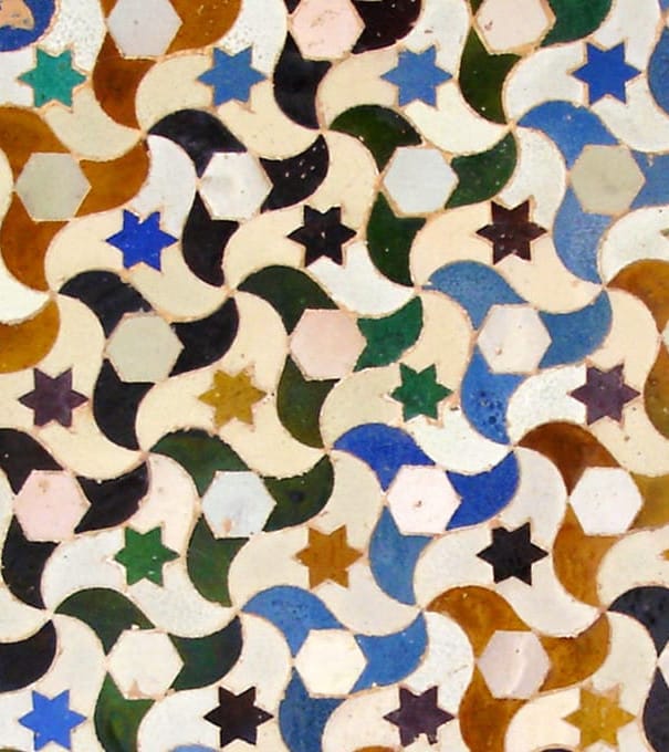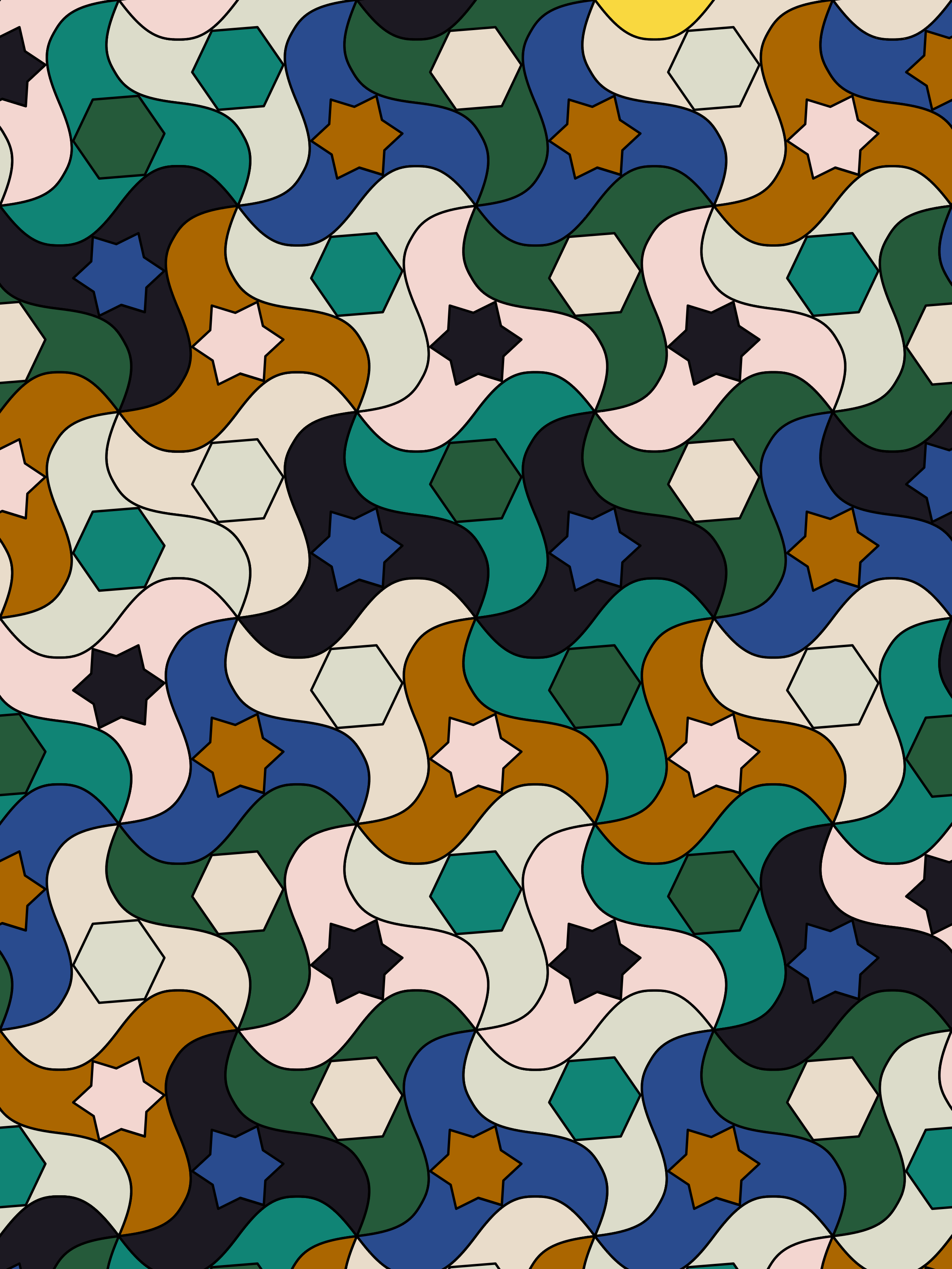 I actually also managed to spend quite a bit of time on making generative art this week, not just polishing some of my ongoing projects but also experimenting with a couple of new ideas - for instance, I spent a little bit of time trying to recreate an interesting tiling pattern that I came across on Pinterest (as always):