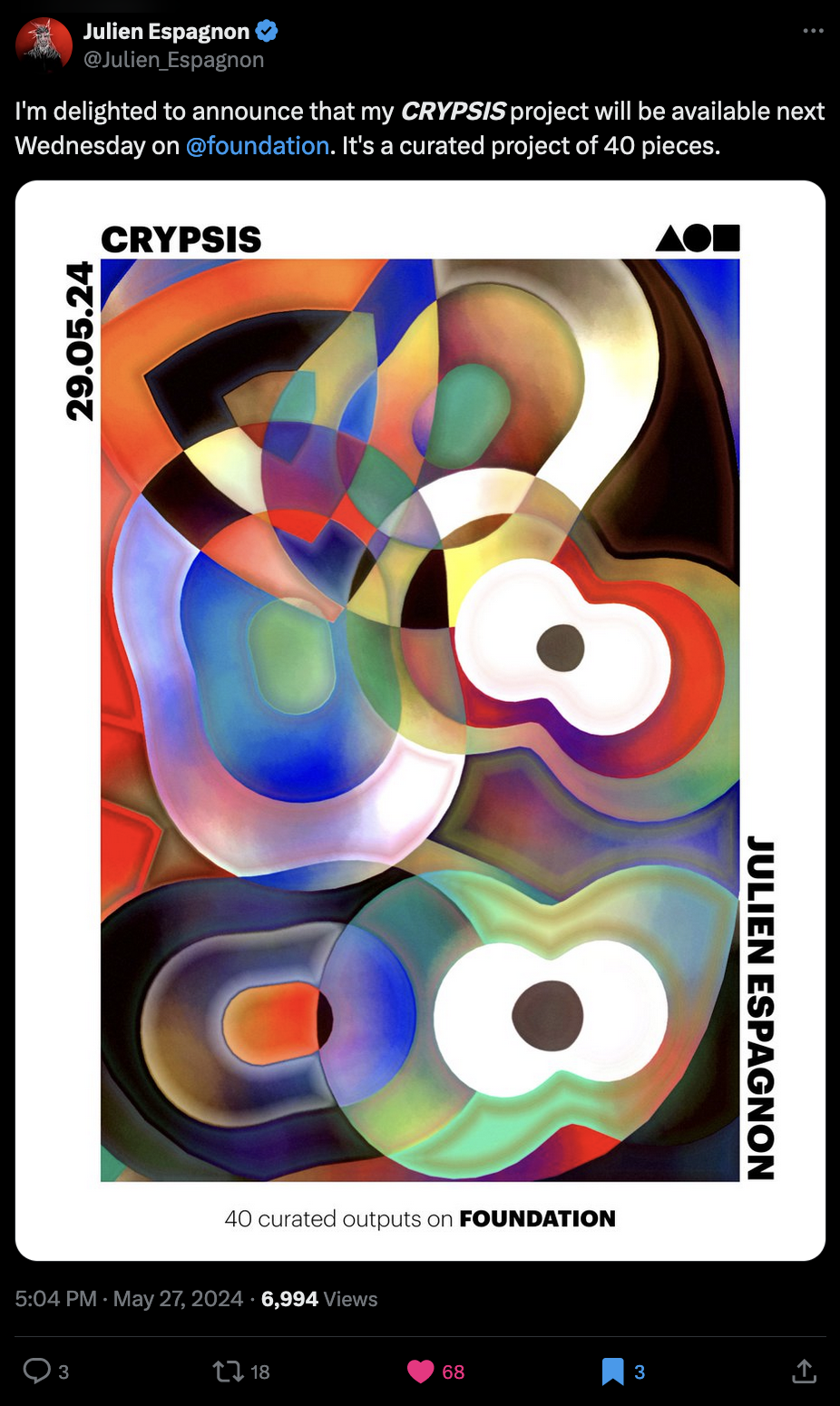 Another project that released a couple of days ago was from Julian Espagnon, another awesome generative artist, and the piece is absolutely delightful - Julien shares a bit more about the process in here:
