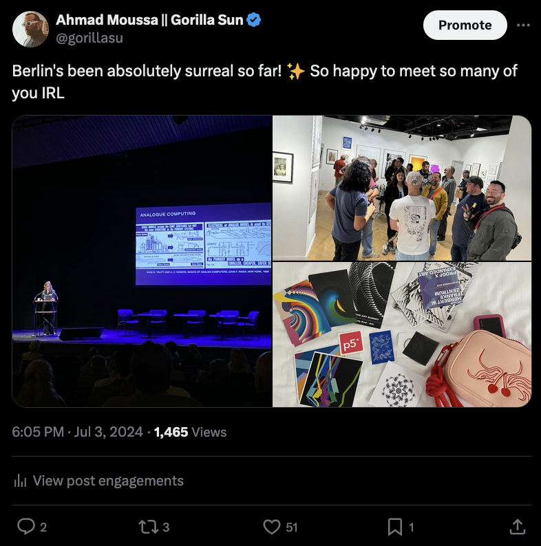 And it was genuinely an incredibly experience, not only to see some of the generative art pioneers in the flesh, but also to meet many of my fellow generative artists and peers that I'd previously only interacted with over the internet. Here's a few pics from the past days: