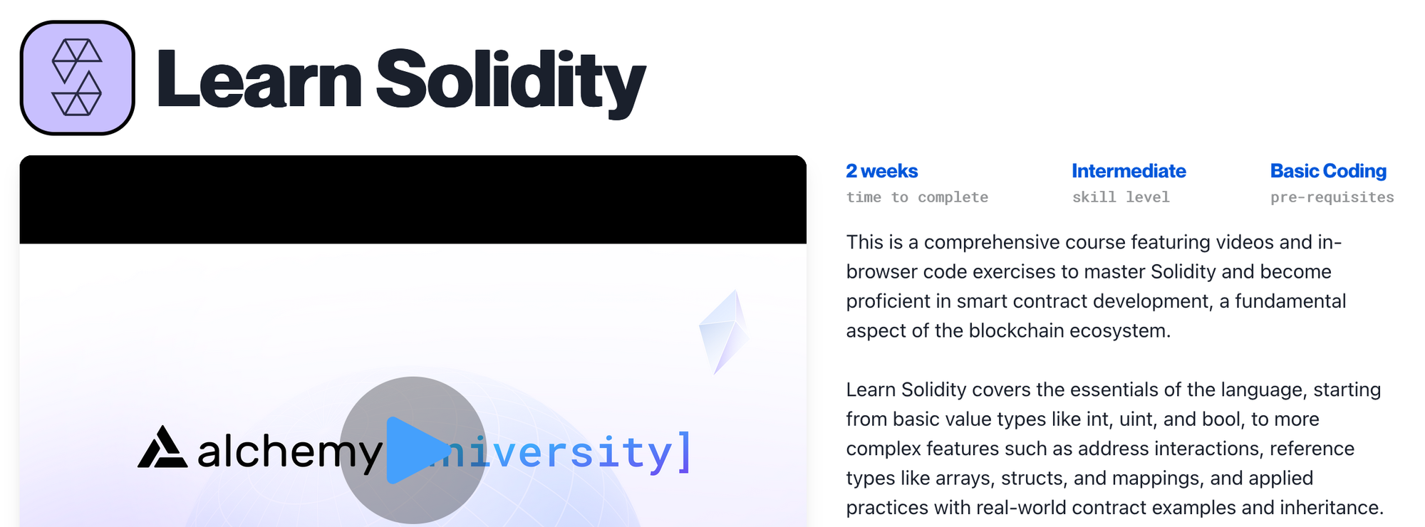 The only thing I had time for this week was starting to learn a little bit more about Solidity programming - just to get a feel for the complexity of it - via this free course by Alchemy (also not sponsored):