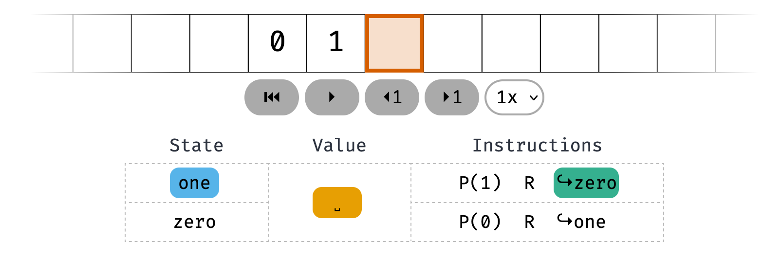 Back in 1936, Alan Turing came up with the original idealized model of a computer, he proposed a machine that could, in principle, perform any computation. And that with just 5 basic instructions. A computation in this setting is a well-defined set of steps (an algorithm) that can transform an input into an output, ranging from simple arithmetic to the much more complex tasks that modern computers can perform. In theory, Turing's original machine could run Fortnite, but probably not at a speed that you'd need it to. Sam also provides us with a sandbox to create our own mini Turing Machines.