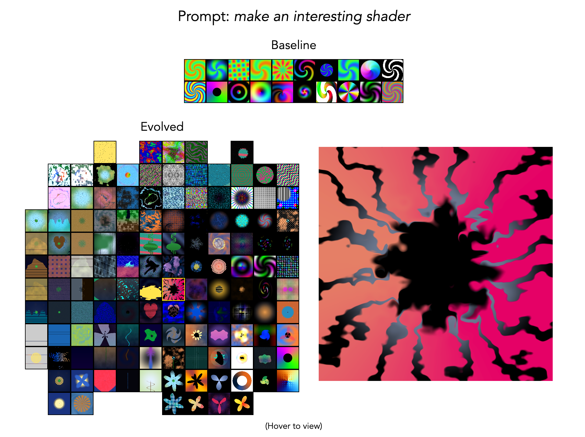 2 — Evolving shader sketches with LLMs: Joel Simons came up with an interesting approach that leverages evolutionary principles for prompting LLMs, in an attempt to maximize the diversity of generated outputs.