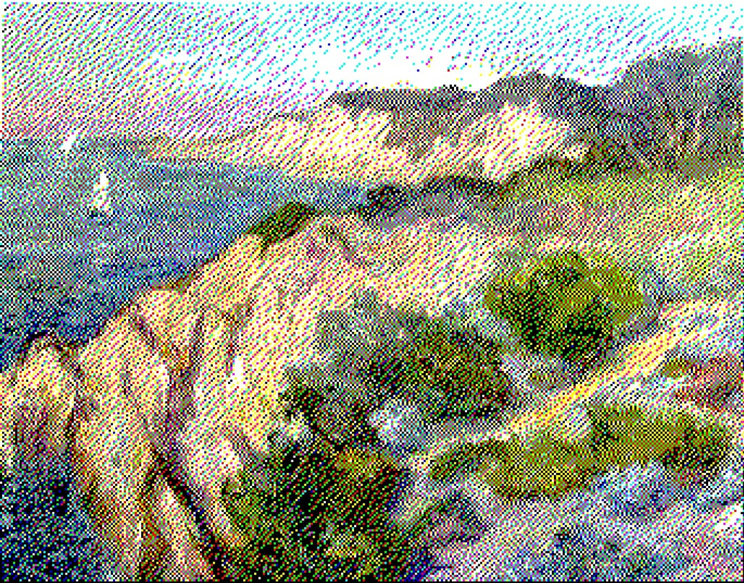 To end this first segments, and to share something artful, I saw that Roni Kaufman has recently also been experimenting with color dithering, he made this beautiful dithered rendition of Anna Boch's "Falaise - Côte de Bretagne" — go and drop him a like 👇
