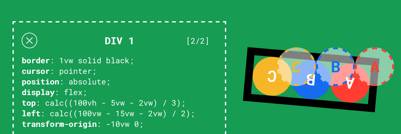 Marcos' concept is simple: you get to add a couple of CSS rules + properties to certain UI elements to make the colored pegs shown on the page overlap the matching holes. Making them barely touch is good enough of a solution here, as you can see from how I solved the third one 🤣