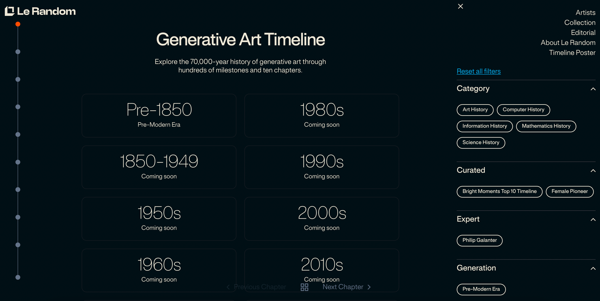 What I'm most excited about is their upcoming timeline of generative art history, it seems like it will be a very nice explorative tool: