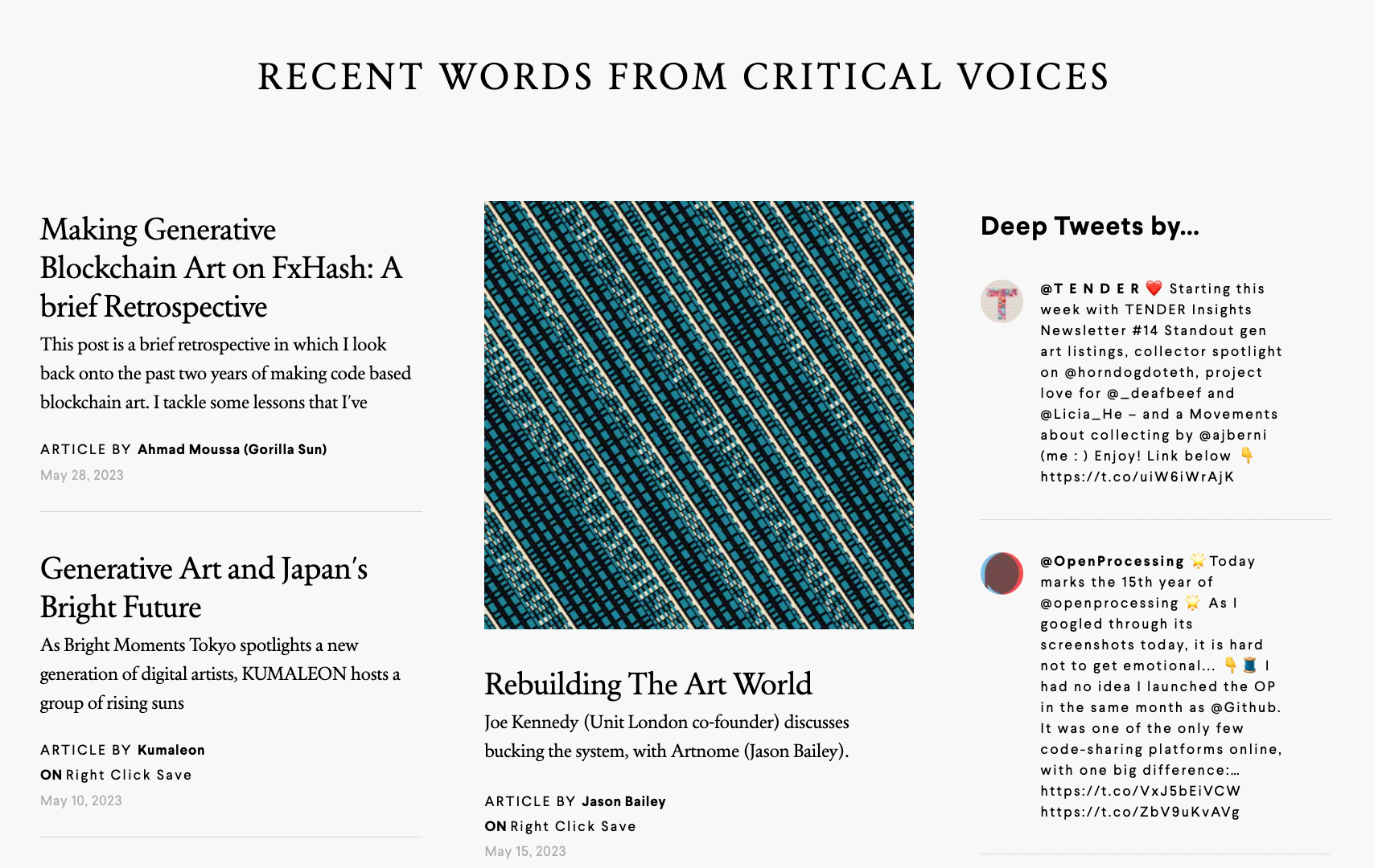 Welcome to your new resource for appreciating, discovering and elevating on-chain generative art.
