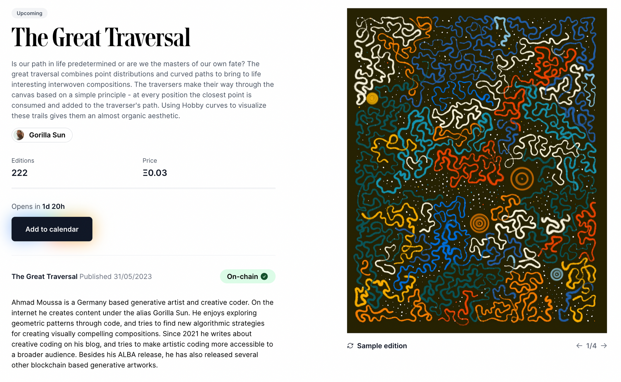 'The Great Traversal' is coming to Alba in less than 2 days - I'm super excited, if you collect on eth you don't want to miss this one!