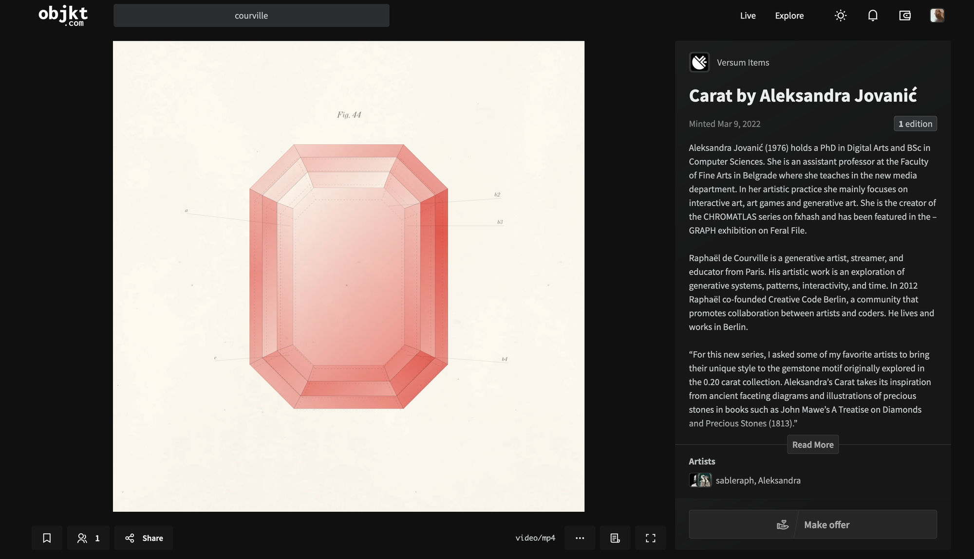 In our conversation we speak about her early beginnings, from the path that led her to becoming an associate professor at the university of arts in Belgrade, that had just spun up a new program in Digital Arts in the early 2000s - to later getting into making code based blockchain art on hicetnunc and fxhash. We also address the influence this formal career has had on the art that she makes today.