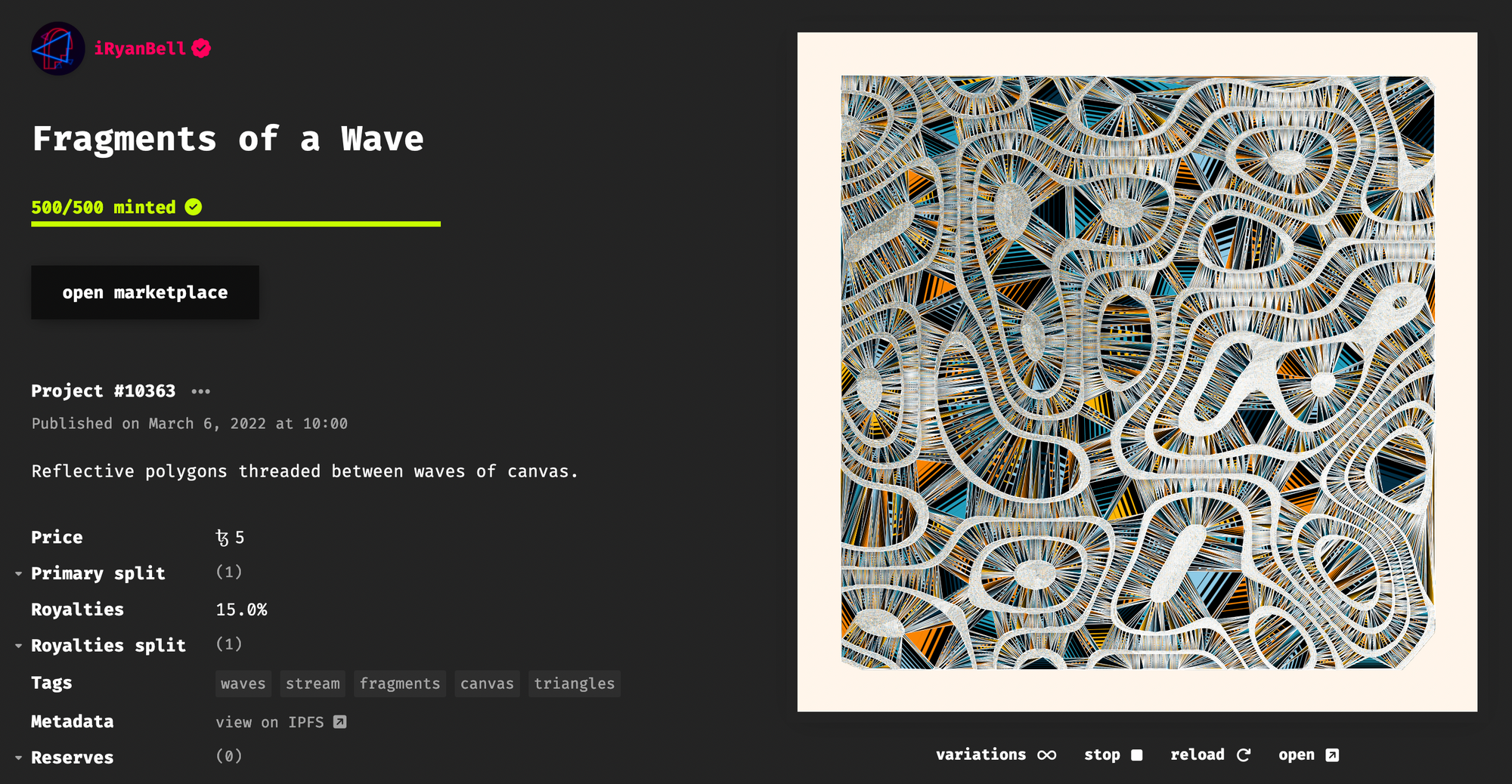 I did 8 releases on FxHash (excluding the pfp projects), then I came in contact with 256Art where I was lucky to be voted in as an artist - back then artists had to be voted in by the community - which lead up to the release of Entangled.
