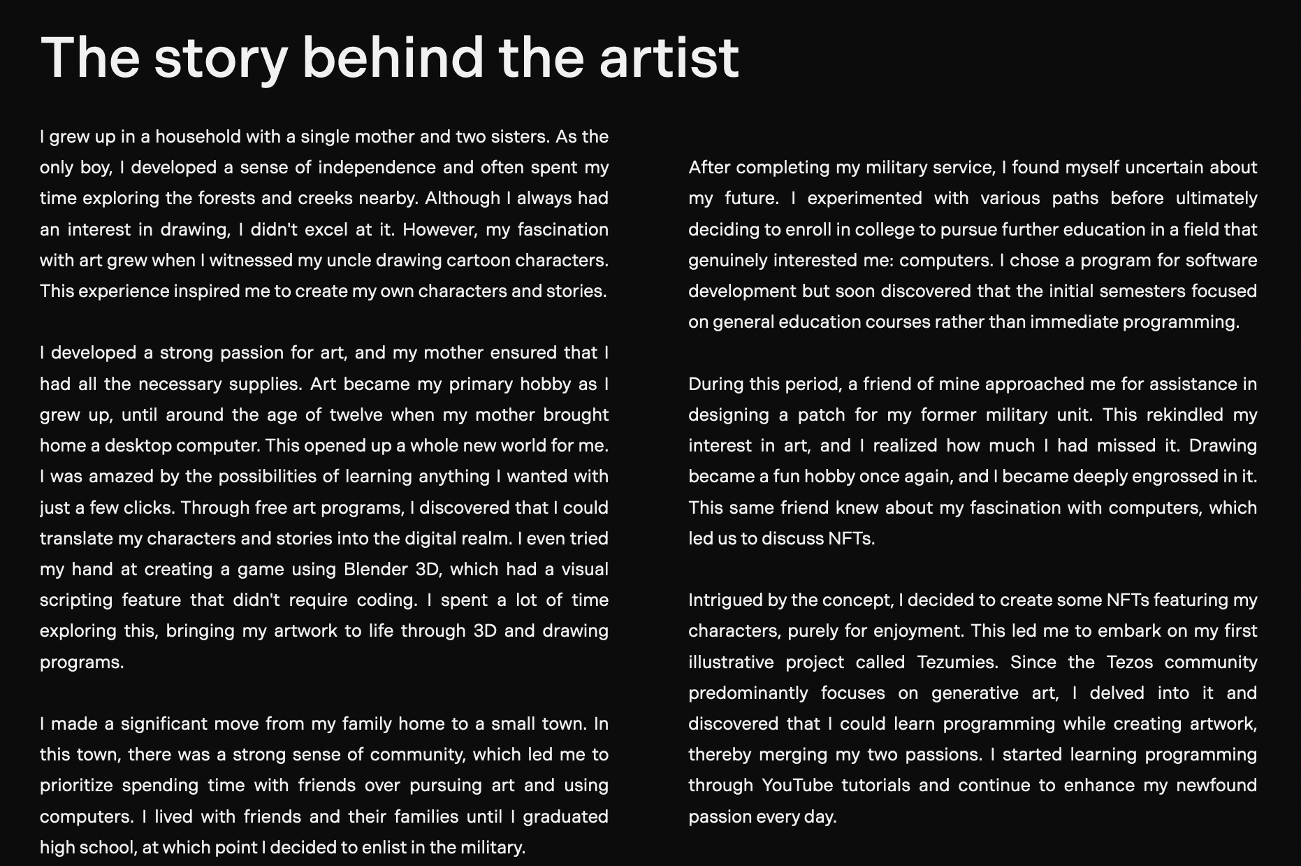 Initially it was only meant for my first release. It's a play on words, combining the blockchain with the pfp characters. I really liked the name, and it felt fun to tie my first creation with my name - hence I made my account name Tezumie as well!