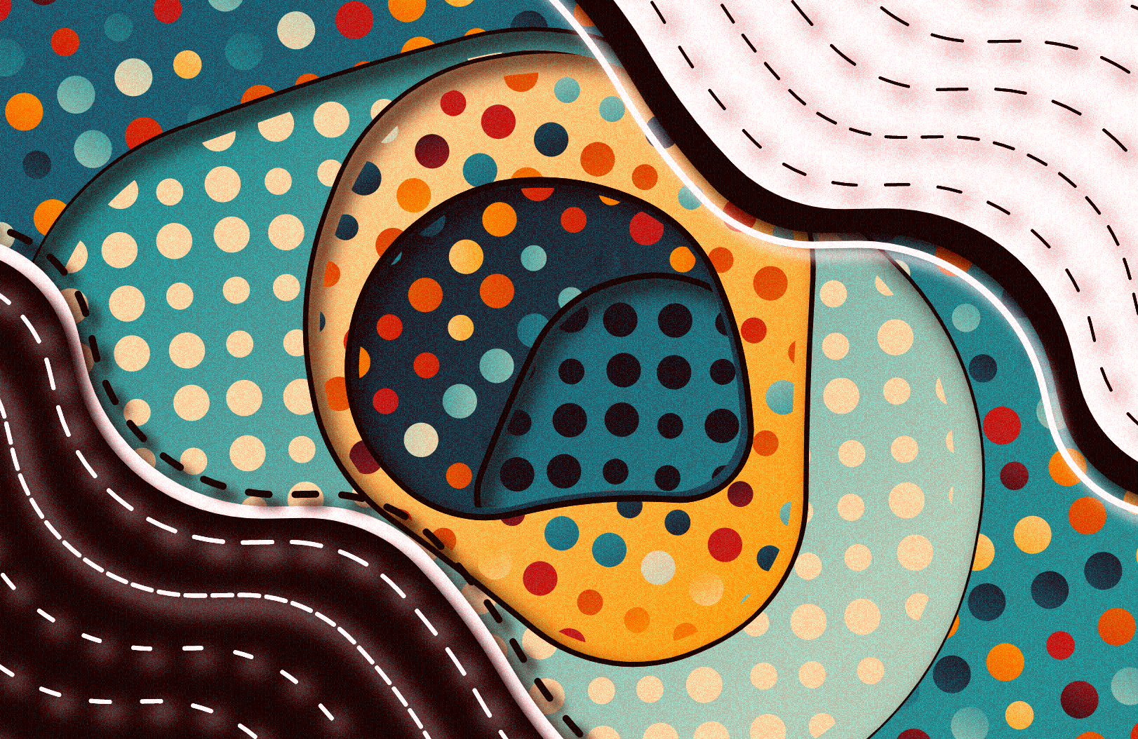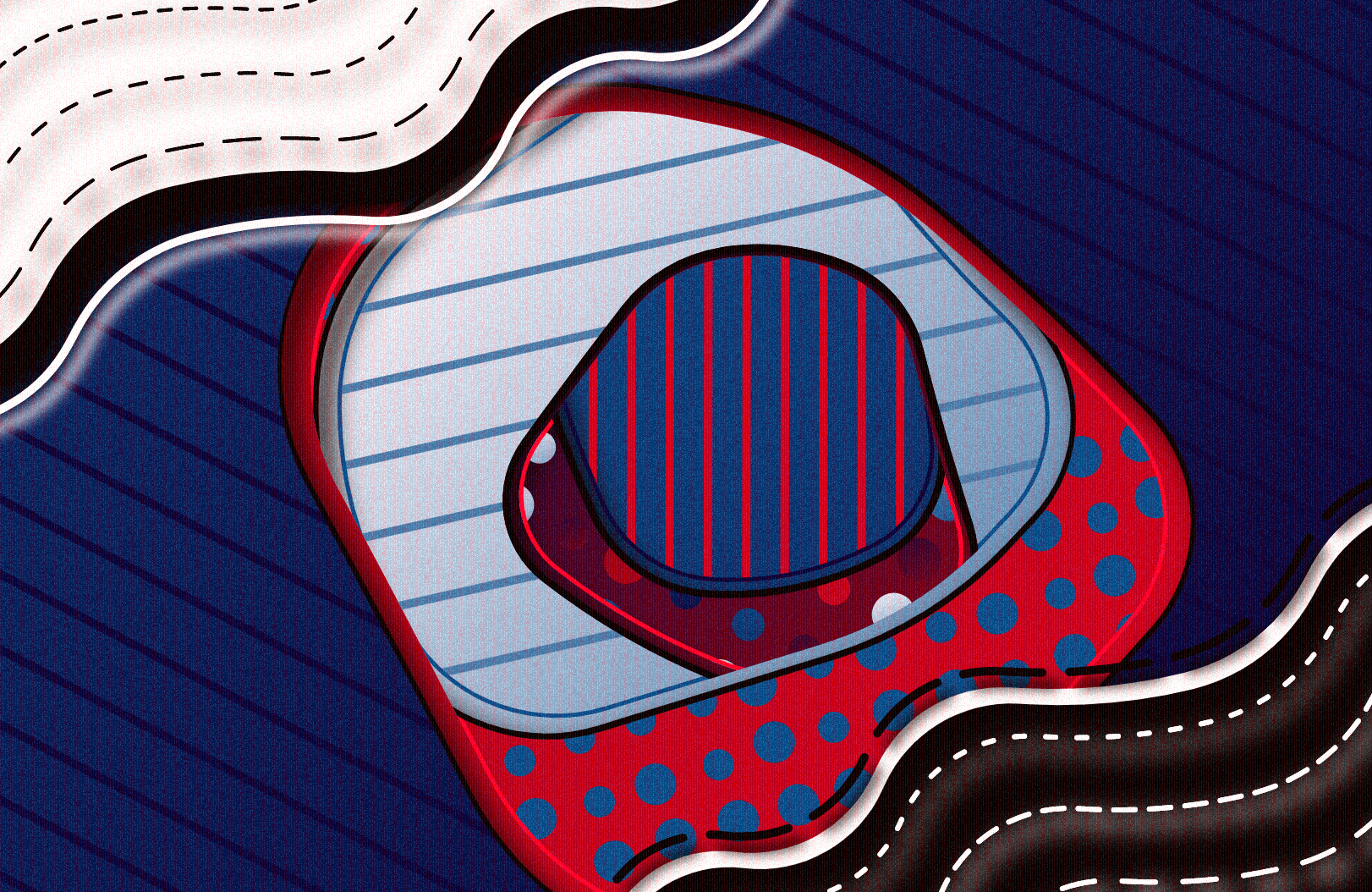 IMPORTANT! Here, to improve visual separation, prior to making the clip call, we precede the clip region by the exact same shape, that is slightly larger and has a fill. This makes sure that the previous pattern doesn't overlap with the new one and has some padding in between itself and the previous layer. If we would use shapes that have no fill, we end up with something that looks like this: