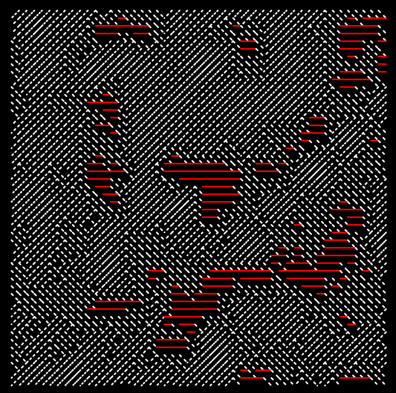 We can also mess around with simple truchet tiling, where the angle of the line is determined by the value of the noise at that particular point: