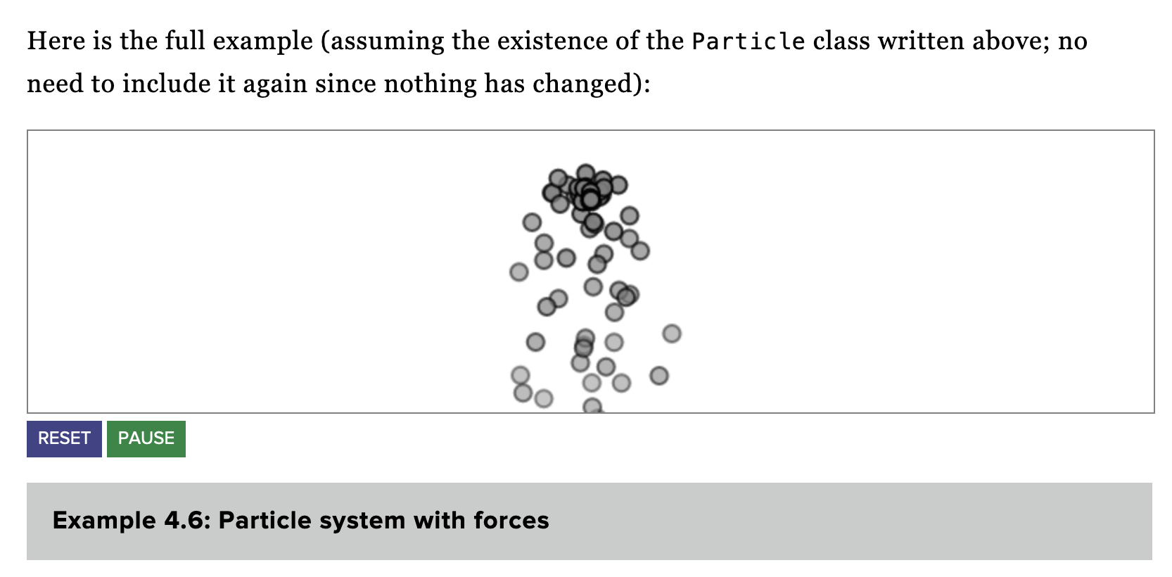 Kind of impressive! But hold on... that looks familiar! It's very similar to what Daniel Schiffman put together in his video tutorial on the same topic. The example from the corresponding chapter in his book Nature of Code is also very similar: