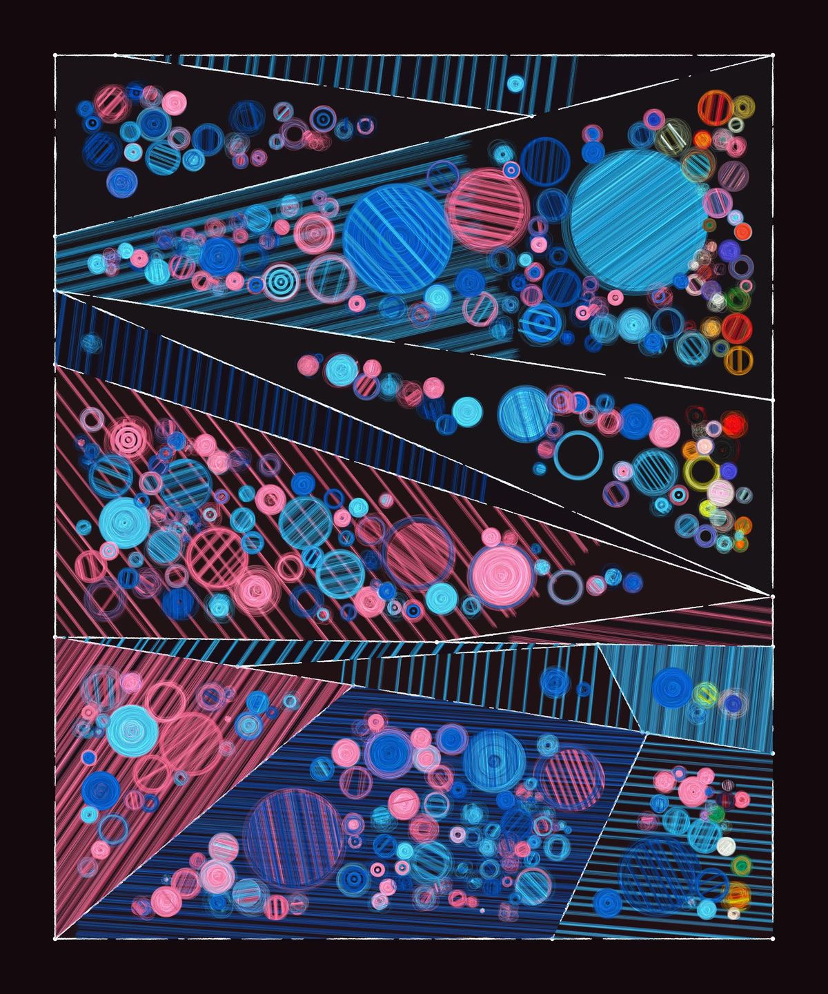 A Recursive Circle Packing Algorithm for Organic Growth Patterns In this post we have a look at a simple algorithmic idea that can produce some very interesting organic looking patterns. At it's essence it's a circle packing strategy, but with the added twist that these circles are connected in a tree like structure. 🌳ðŸ¦